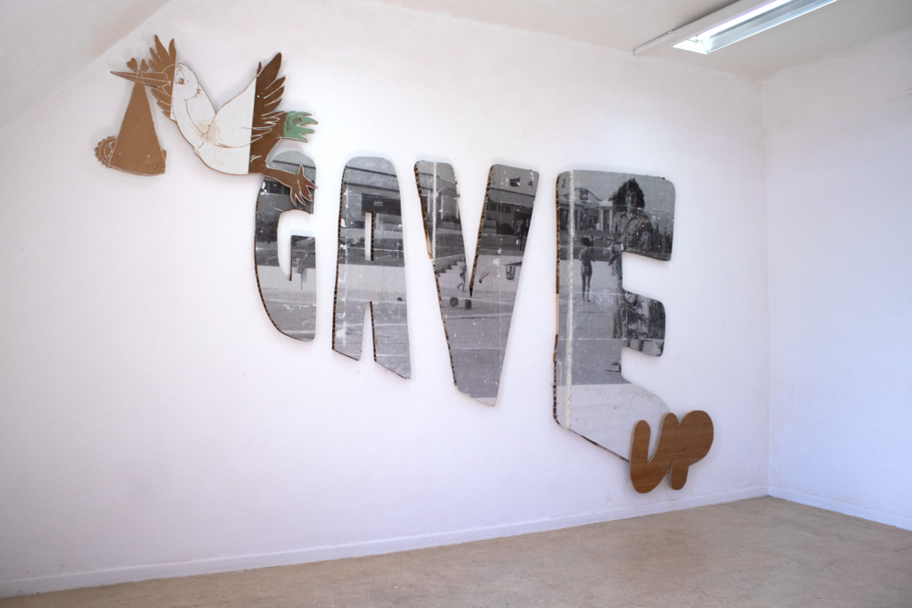Ma pratique s’est ensuite confrontée en prépa à une quantité d’histoire de l’art dont j’ignorais tout. Où j’ai joui d’une liberté plus ou moins bornée d’investir des matériaux, des usages et des pratiques diverses. Rapidement le contre-emploi, l’absurde et des questions plus théoriques nourries du court passage en sociologie sont rentrées dans mes réflexions artistiques autour de l’institution, du cadre, de l’acte créateur en lui-même.