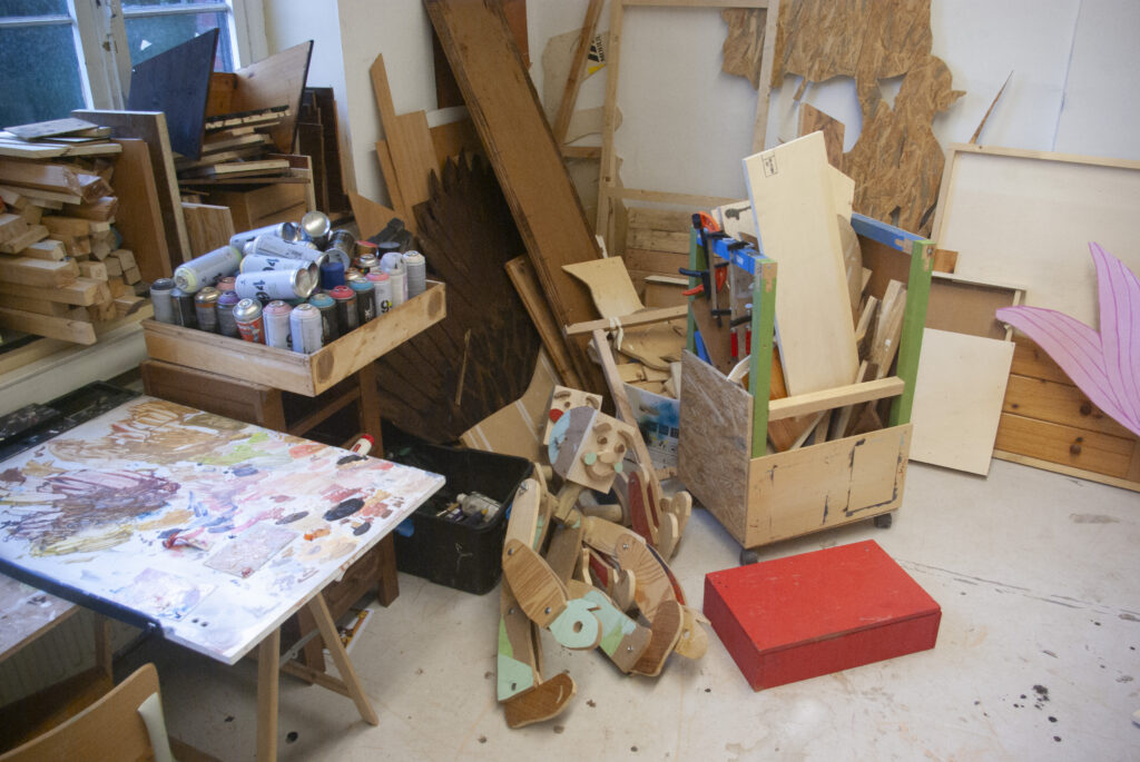 À la maison, chacun de nous à une pratique artistique : dessin, graff, photo, mosaïque, peinture.